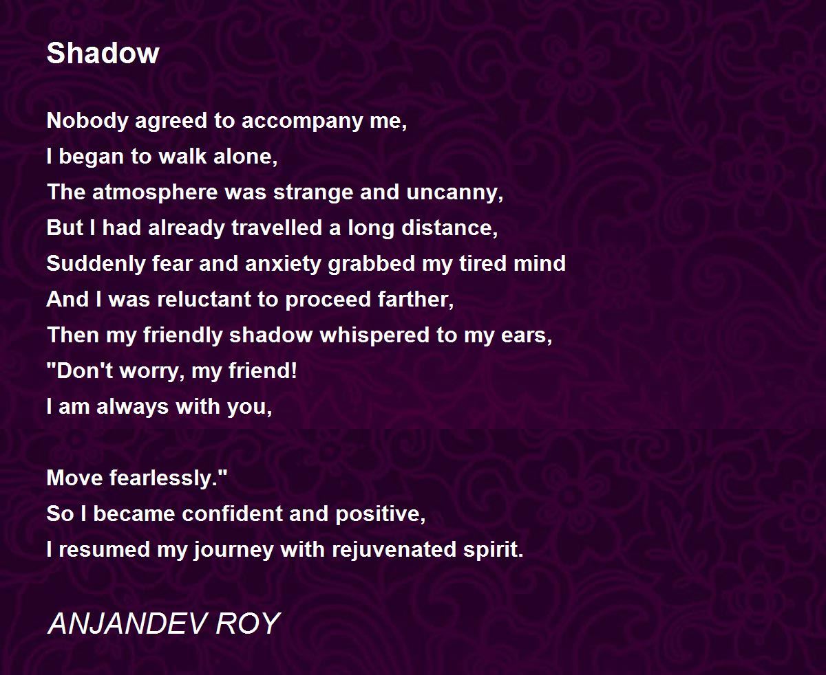 I am always with you, Move fearlessly." So I became confident and positive, I resumed my journey with rejuvenated spirit. keep moving further and further shadows never leave even dead bodies u know it till we become ashes