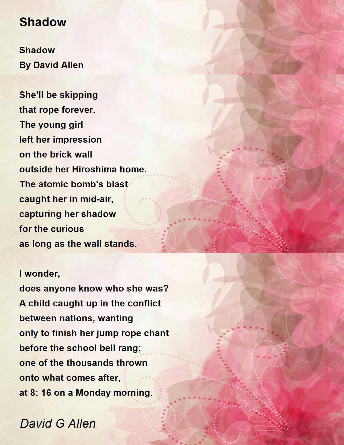Such a nice poem, David G Allen. Read my poem, Love and L u s t. Thanks.