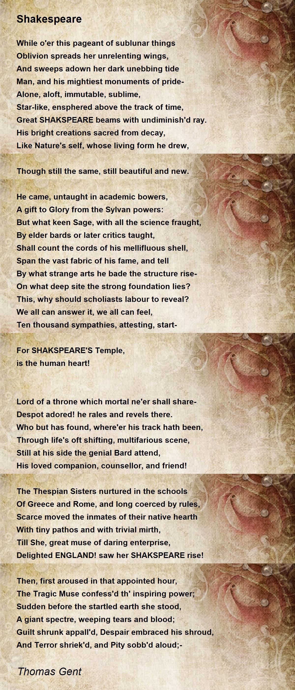 Delighted ENGLAND! saw her SHAKSPEARE rise!