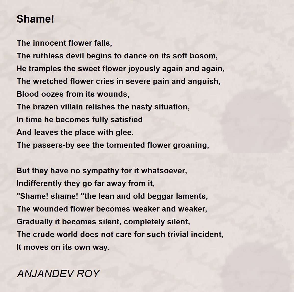 "Shame! shame! "the lean and old beggar laments,
