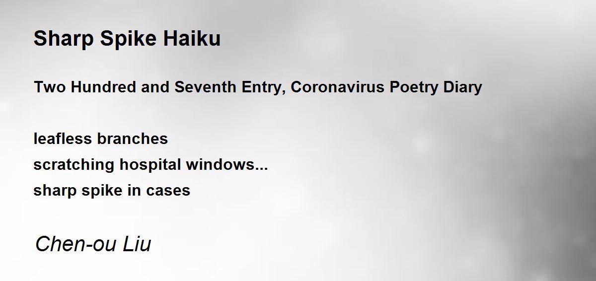 Two Hundred and Seventh Entry, Coronavirus Poetry Diary leafless branches scratching hospital windows... sharp spike in cases