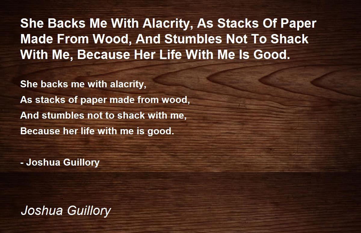 She backs me with alacrity,