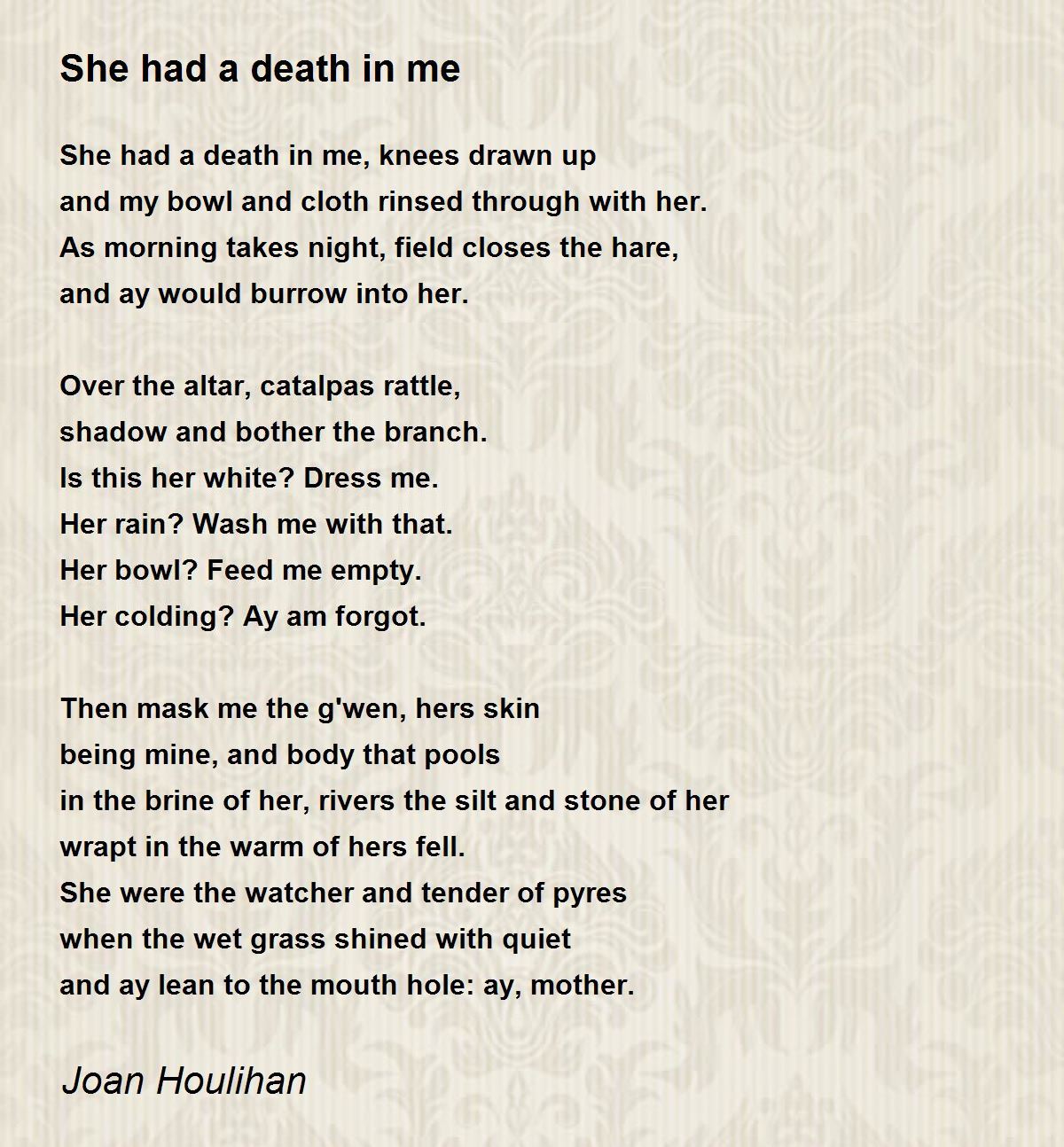 She had a death in me, knees drawn up