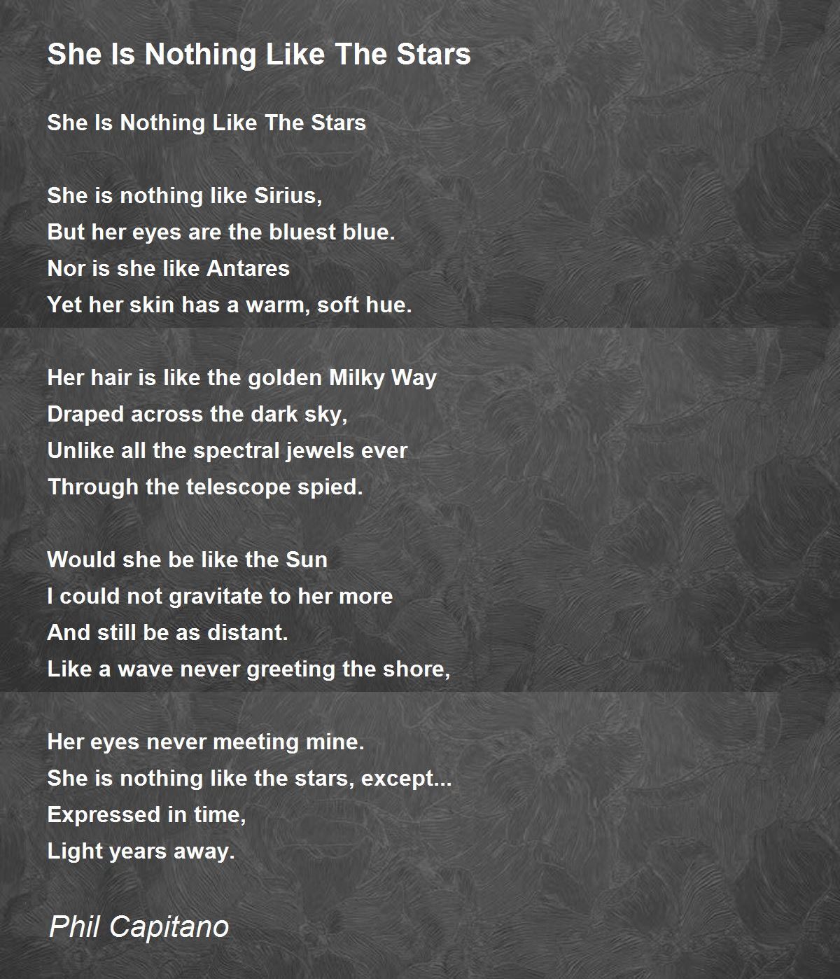 Would she be like the Sun I could not gravitate to her more And still be as distant. Like a wave never greeting the shore, .........nice depiction. Beautiful poem shared. Thanks for posting.