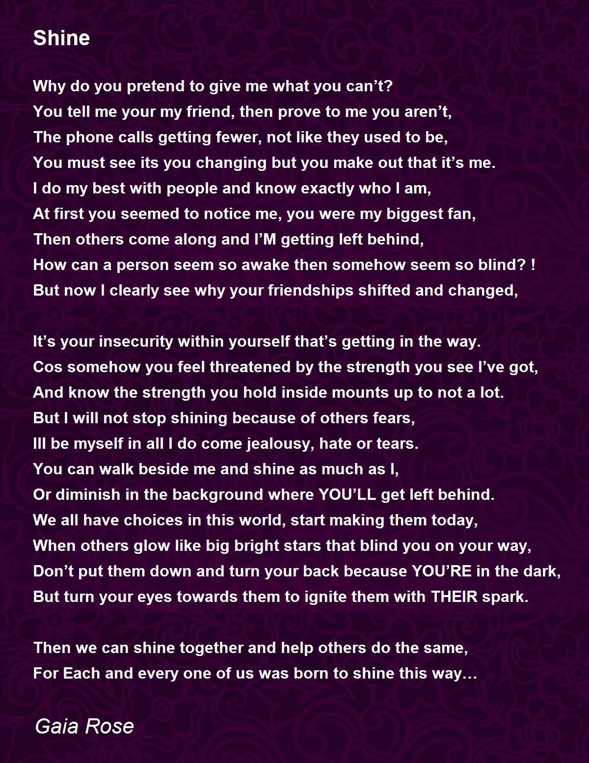 But I will not stop shining because of others fears,