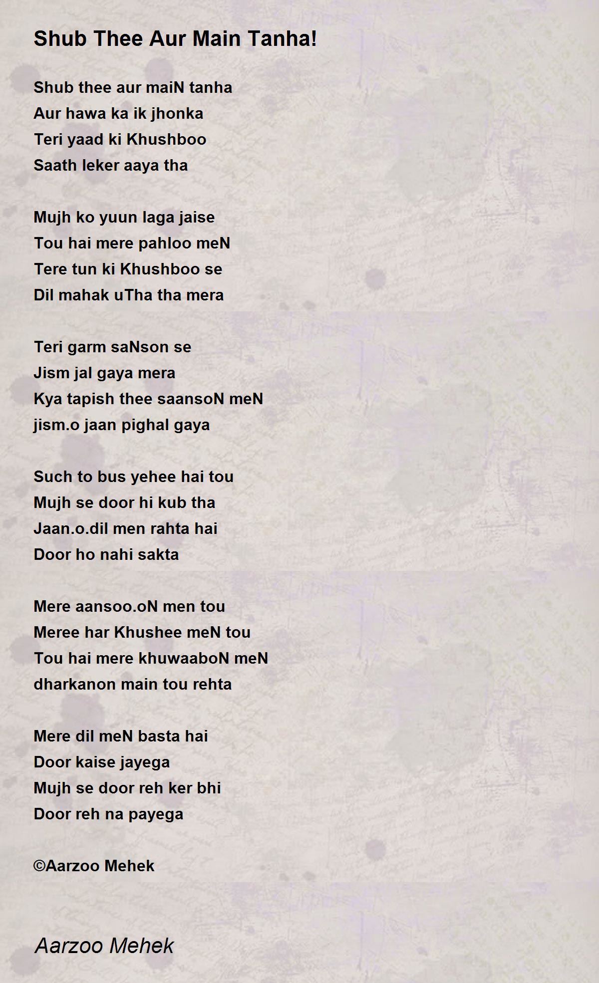 A touching song of love and separation. It is more of ghazal. Arzoo, I would like you to add music and post in ph in your own voice. Pl try..