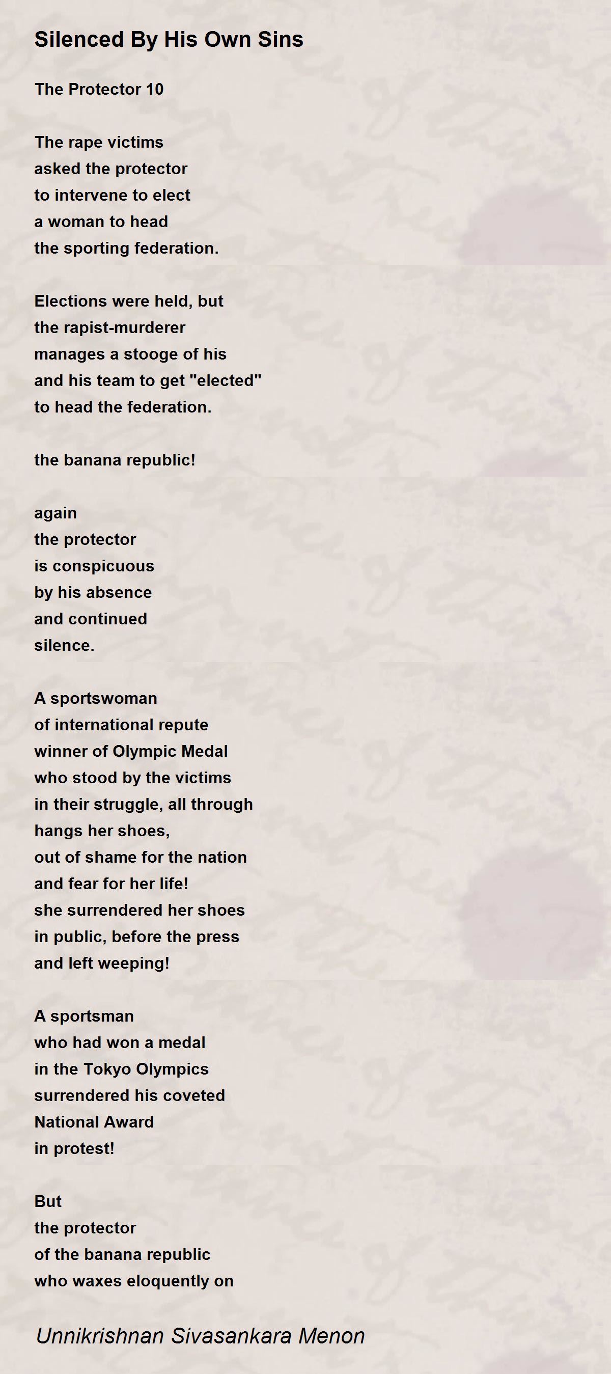 The Protector (of rapists, murderers, and criminals) remains silenced by his own sins! But, he has succeeded; succeeded in converting a sovereign genuine people's republic into a banana republic. we need to appreciate him.
