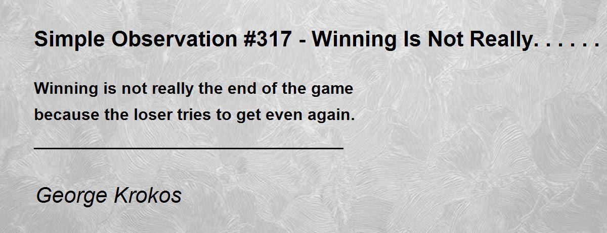 Winning is not really the end of the game because the loser tries to get even again. __________________________________