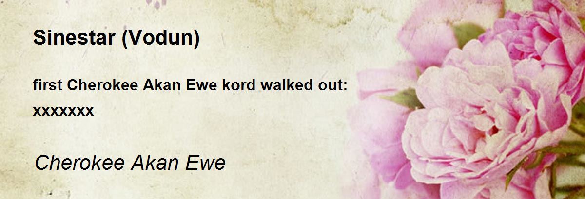 first Cherokee Akan Ewe kord walked out: xxxxxxx