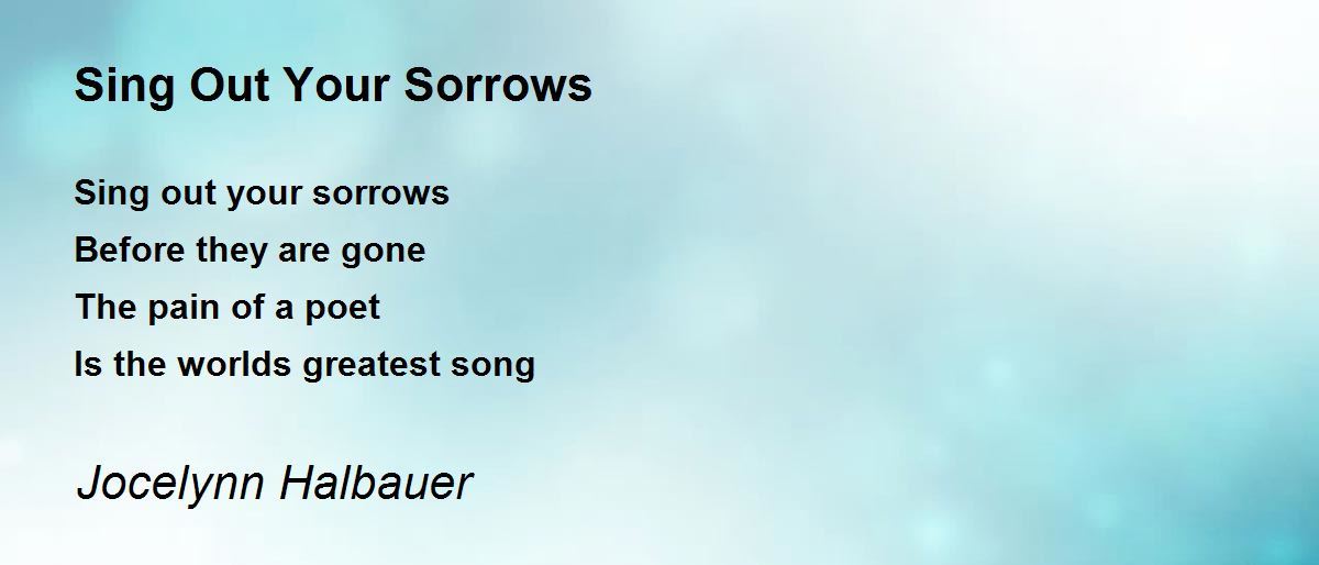 Sing out your sorrows Before they are gone The pain of a poet Is the worlds greatest song