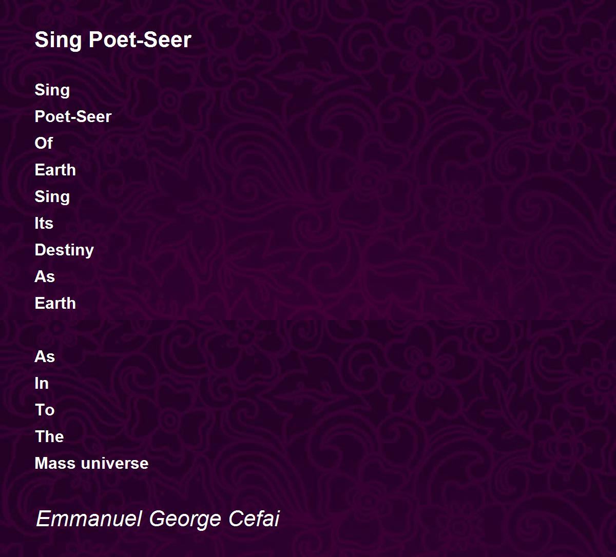 Sing Poet-Seer Of Earth Sing Its Destiny As Earth As In To The Mass universe