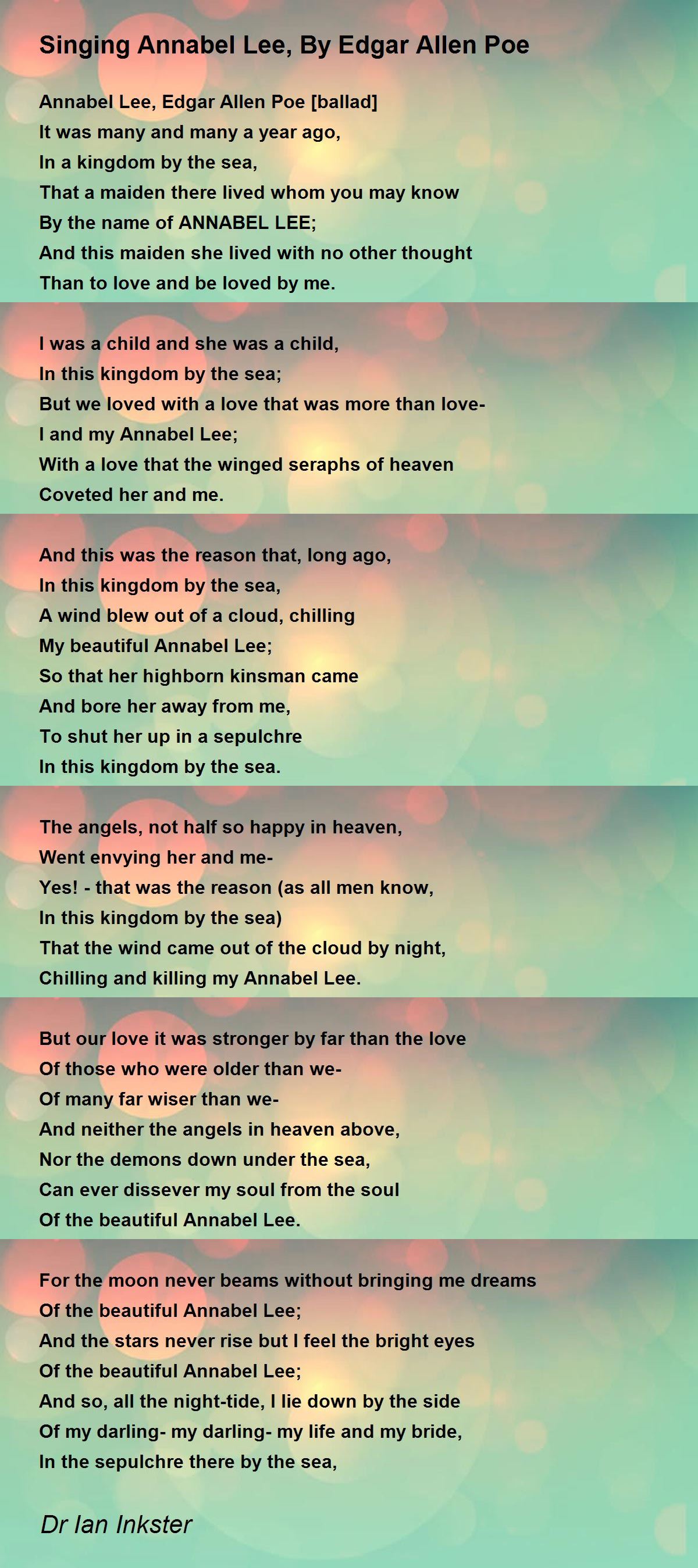 Of the beautiful Annabel Lee.