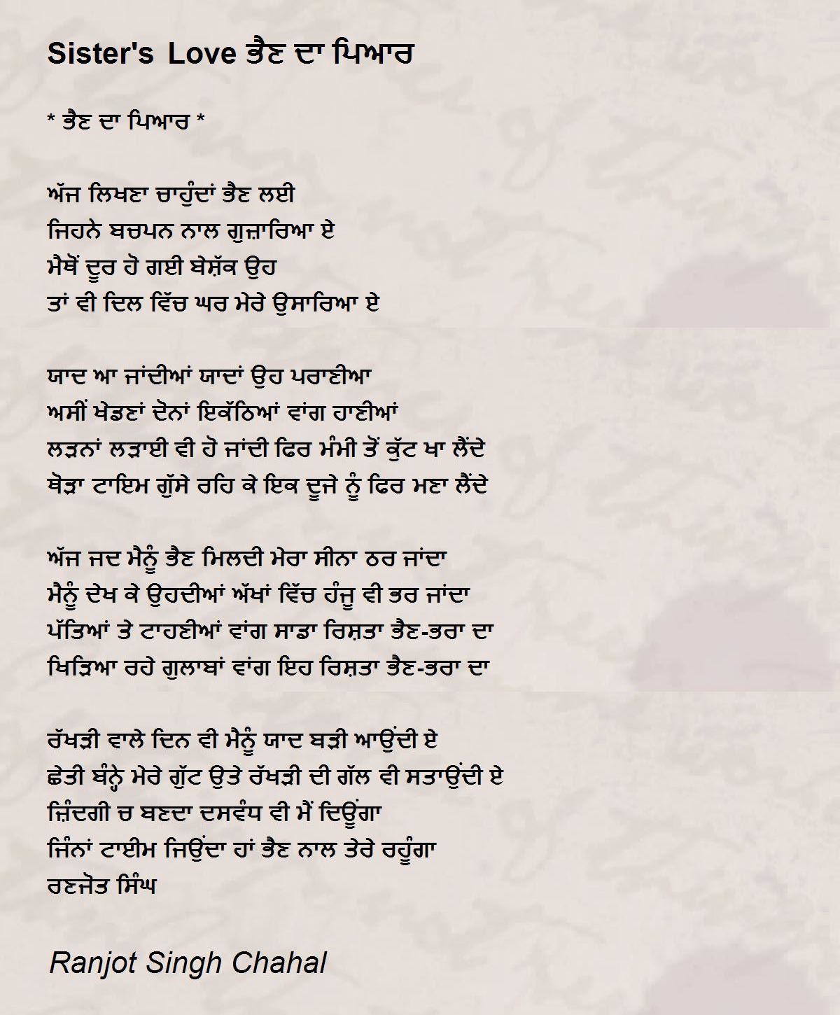 * ਭੈਣ ਦਾ ਪਿਆਰ *