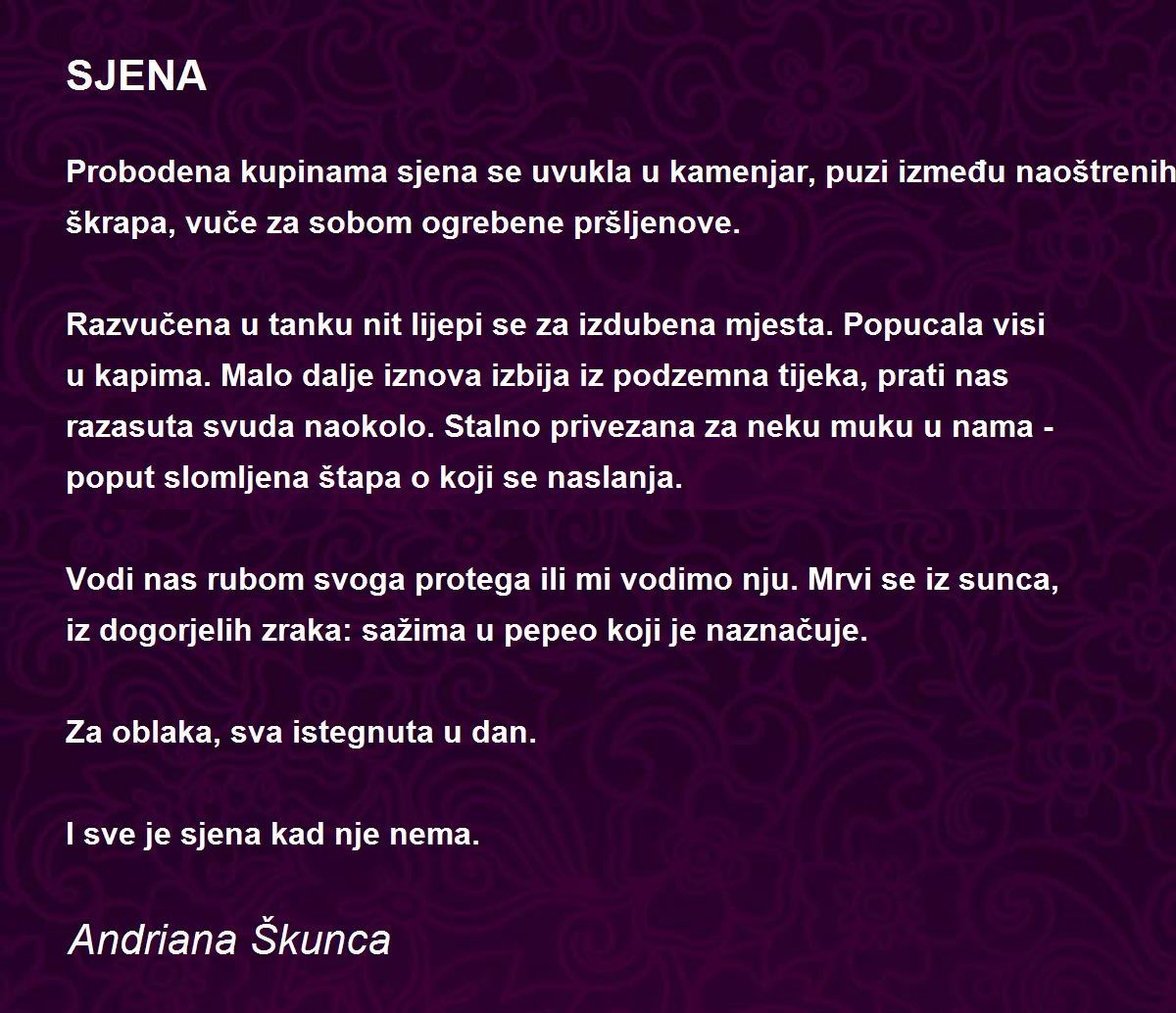 Probodena kupinama sjena se uvukla u kamenjar, puzi između naoštrenih škrapa, vuče za sobom ogrebene pršljenove.