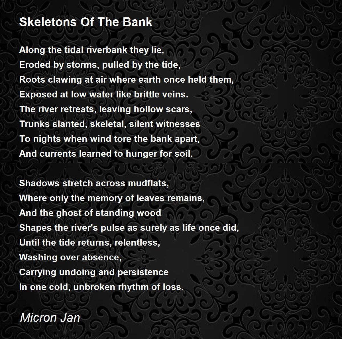 Shapes the river's pulse as surely as life once did,