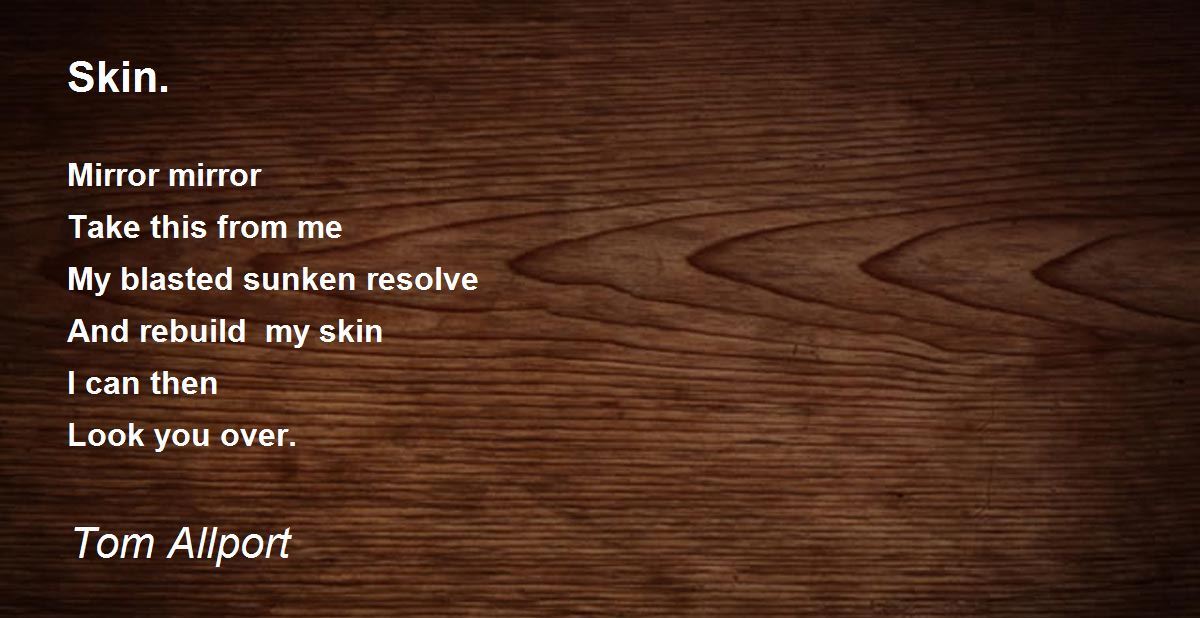 Mirror mirror Take this from me My blasted sunken resolve And rebuild my skin I can then Look you over.