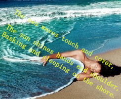 The sea waves touch and cover, The sun shines hand and shoulder, Basking and sleeping on the shore