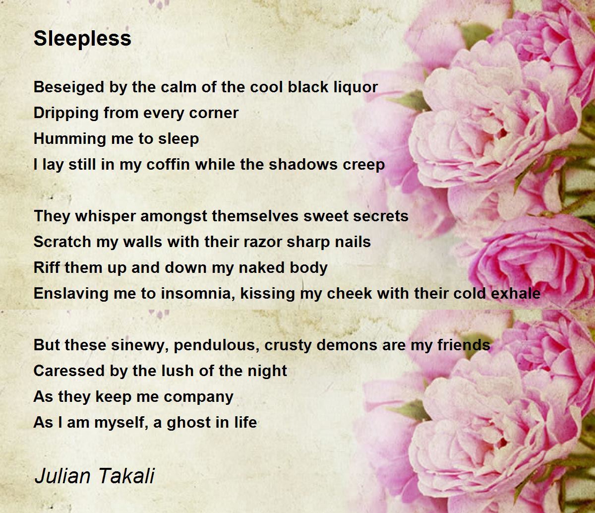 Enslaving me to insomnia, kissing my cheek with their cold exhale