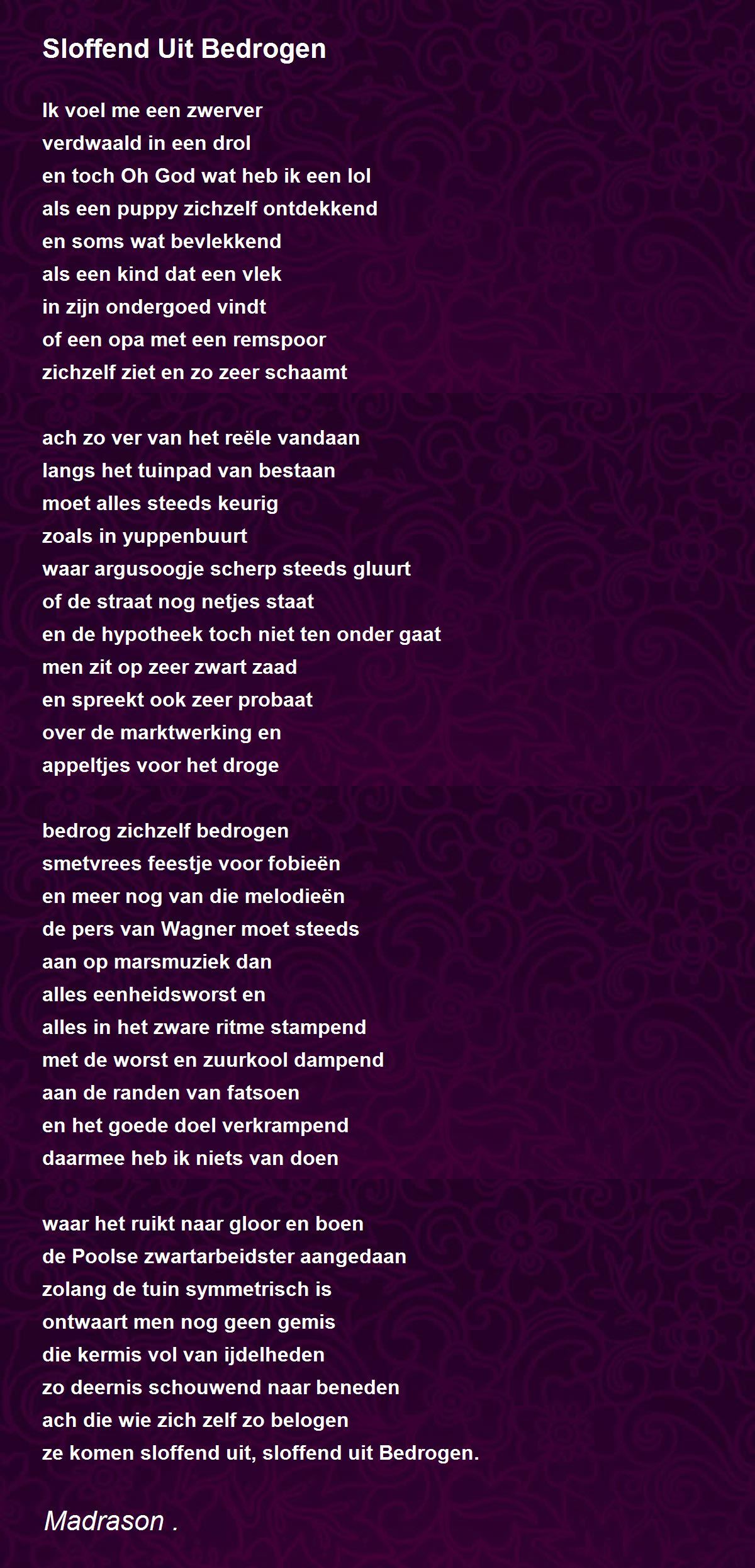 ze komen sloffend uit, sloffend uit Bedrogen.