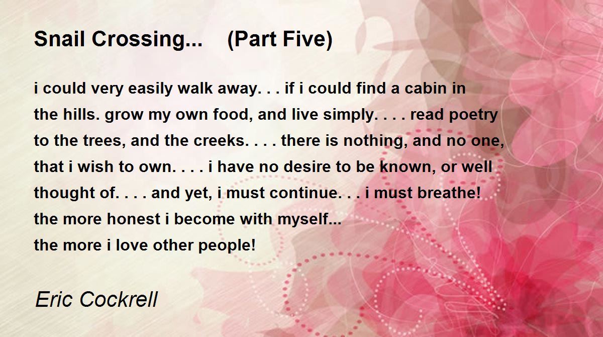 i could very easily walk away... if i could find a cabin in the hills. grow my own food, and live simply.... read poetry to the trees, and the creeks.... there is nothing, and no one, that i wish to own.... i have no desire to be known, or well thought of.... and yet, i must continue... i must breathe!