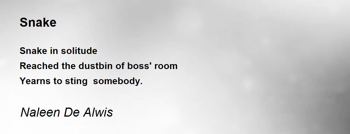 Snake in solitude Reached the dustbin of boss' room Yearns to sting somebody.