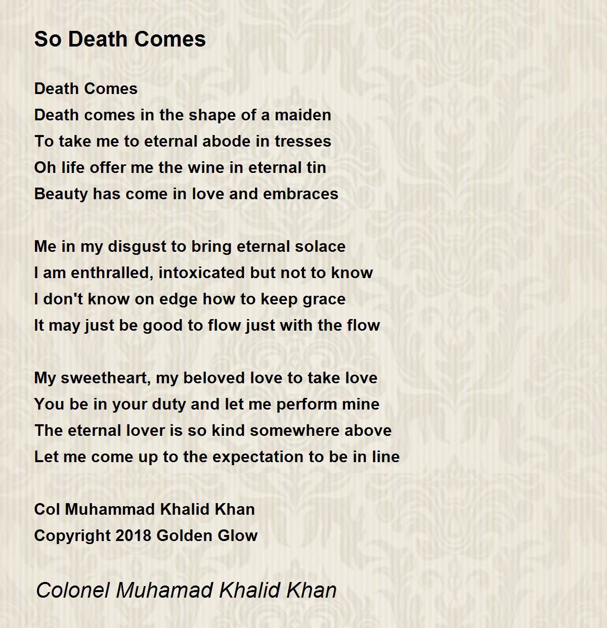Who can resist a poem with a first line like that? Death comes in the shape of a maiden! I wondered where you would go from there, but you chose a line of thought that would not ruffle the maiden hearts of PH too much.