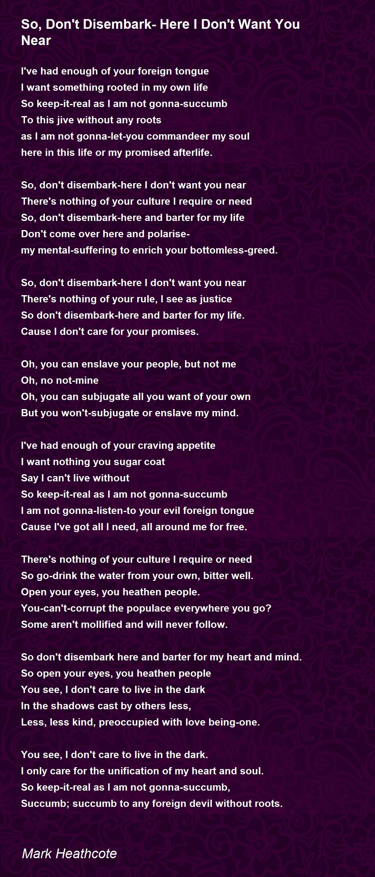 So, don't disembark-here I don't want you near