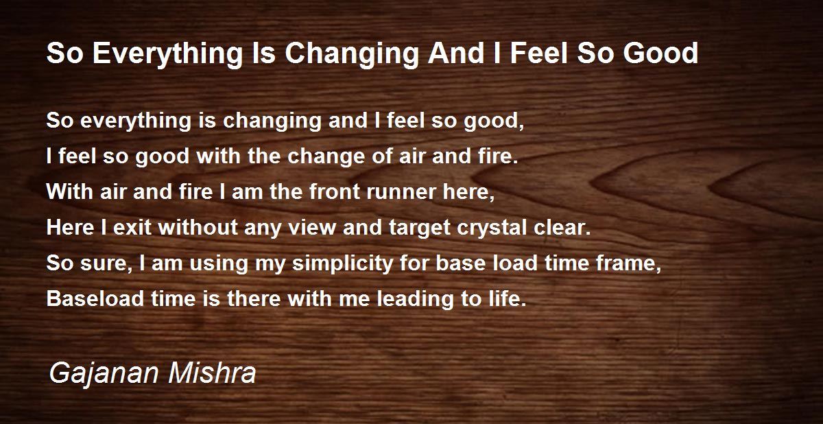 So everything is changing and I feel so good,