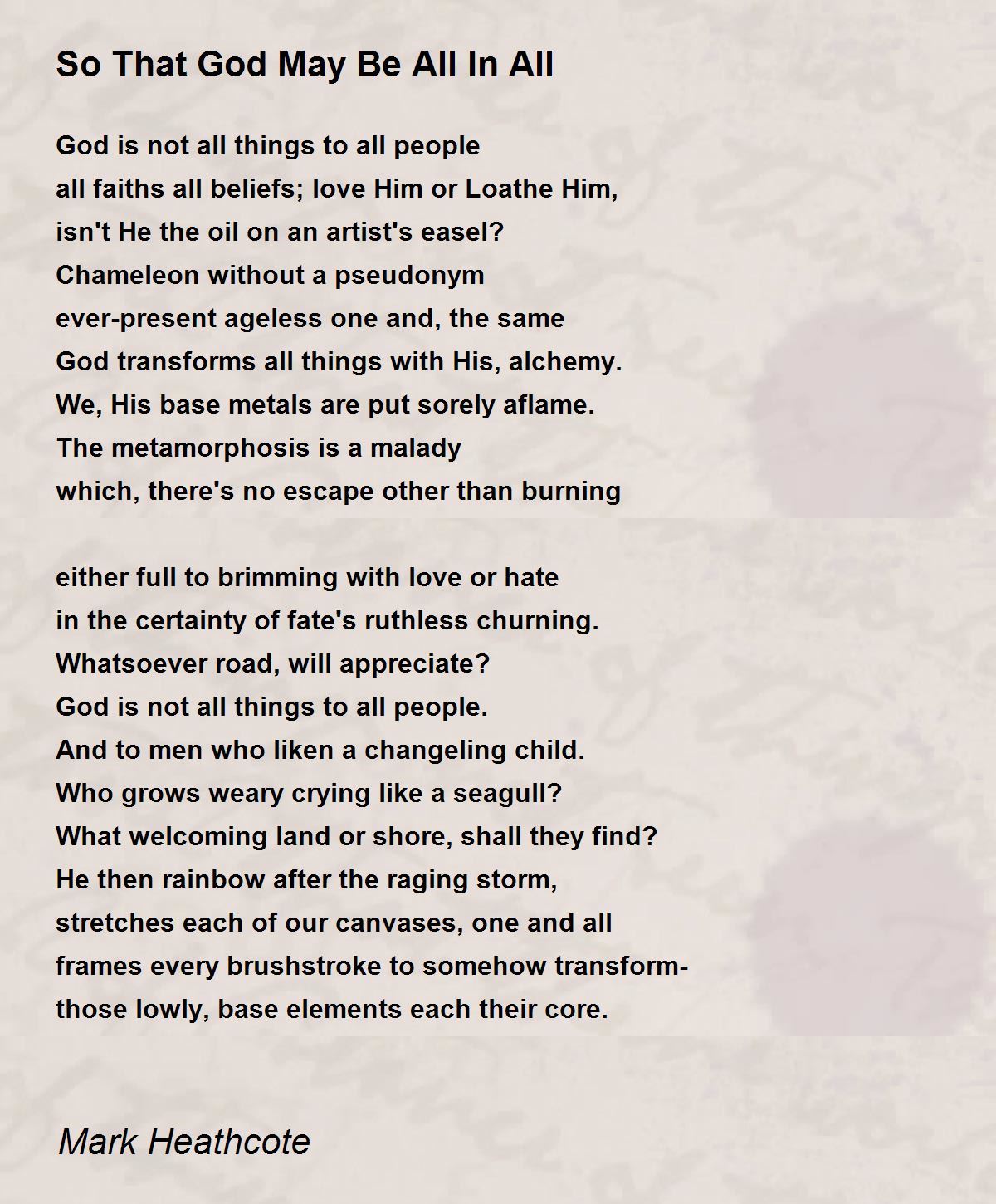 God transforms all things with His, alchemy.