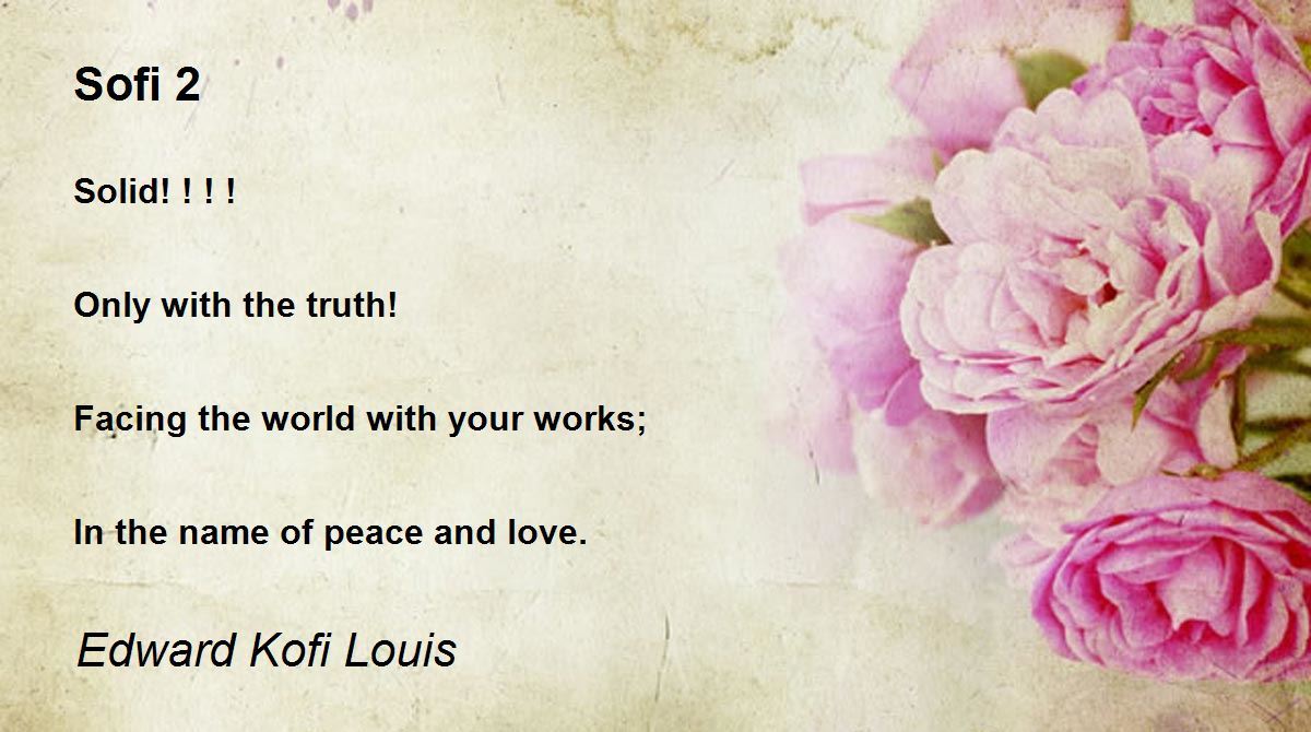 Solid! ! ! ! Only with the truth! Facing the world with your works; In the name of peace and love.