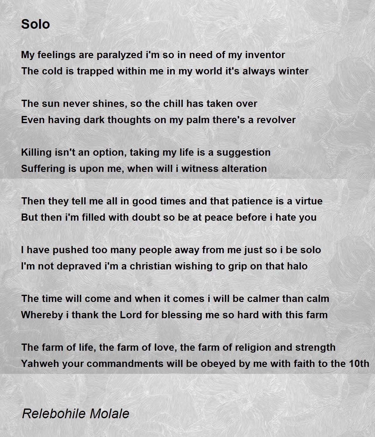 Feeling lonely yet thanking for the blessing..great poem