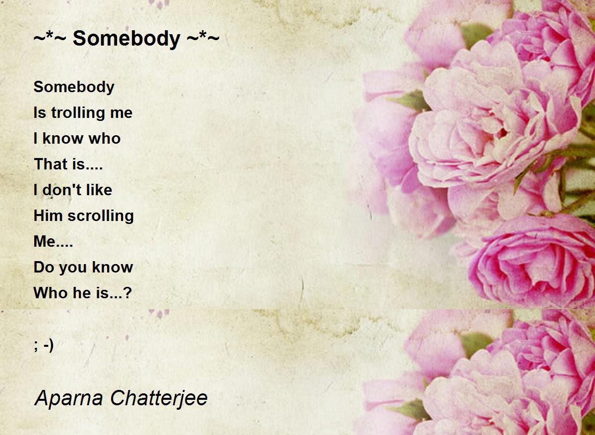 Somebody Is trolling me I know who That is.... I don't like Him scrolling Me.... Do you know Who he is...? ; -)