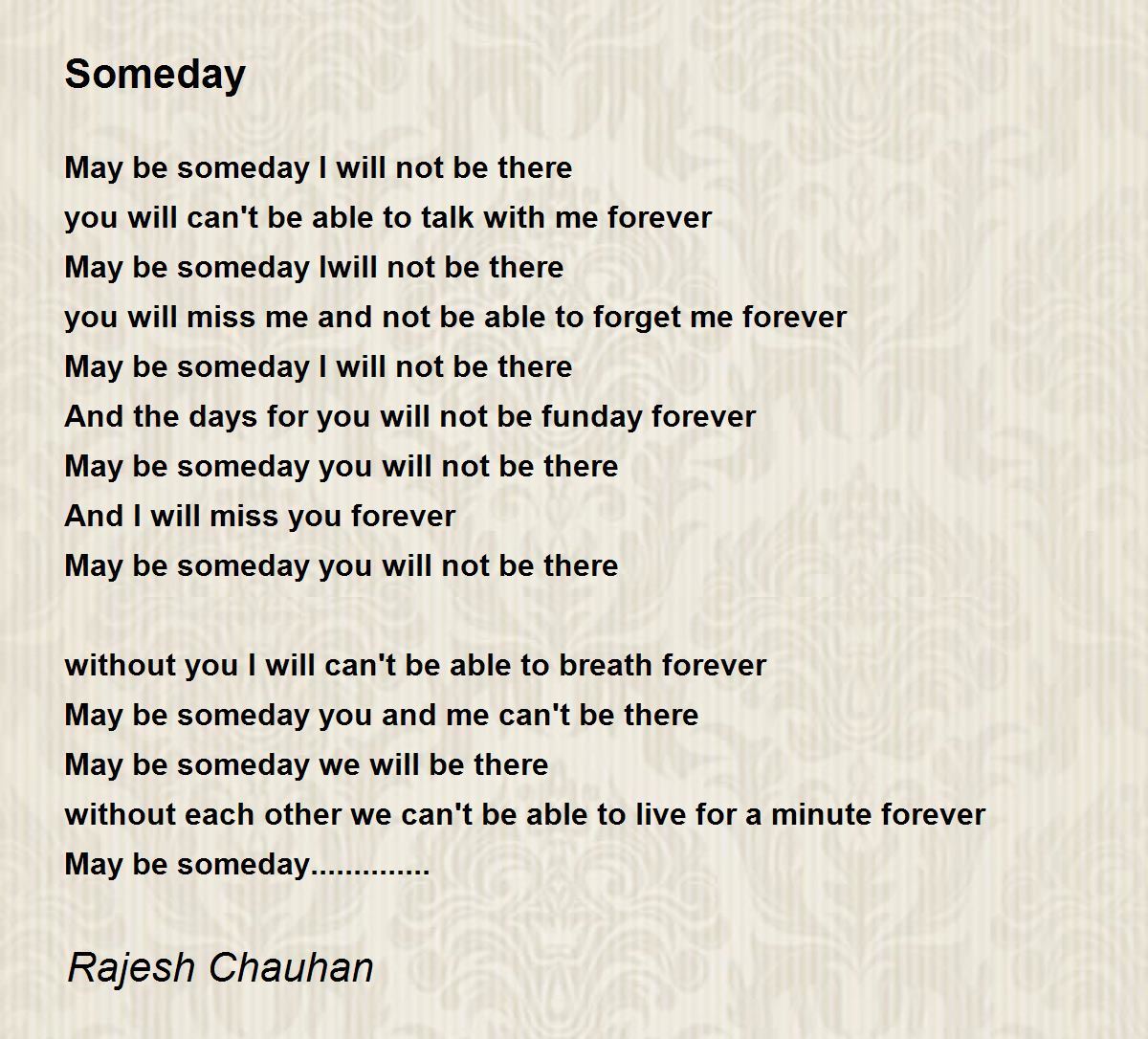 May be someday Iwill not be there
