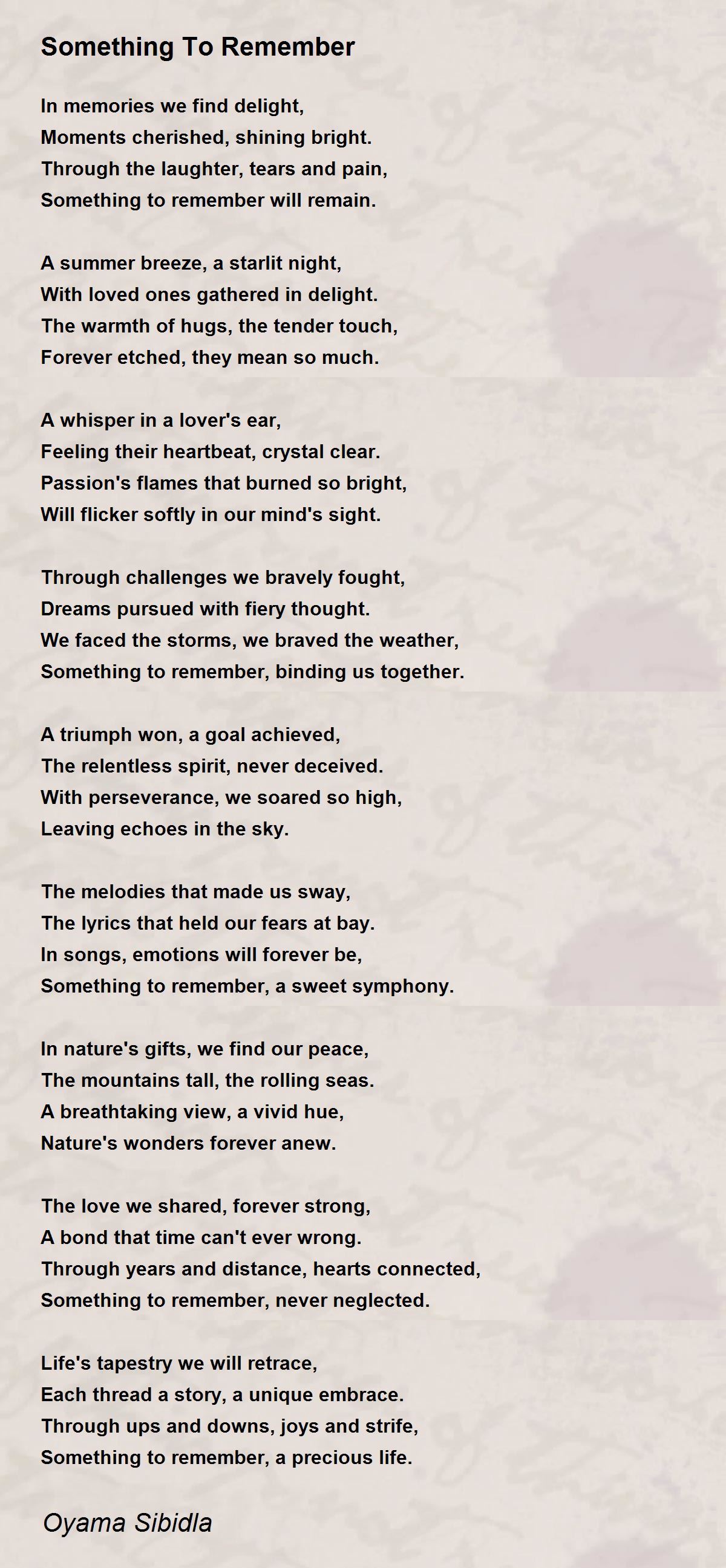 Something to remember will remain.