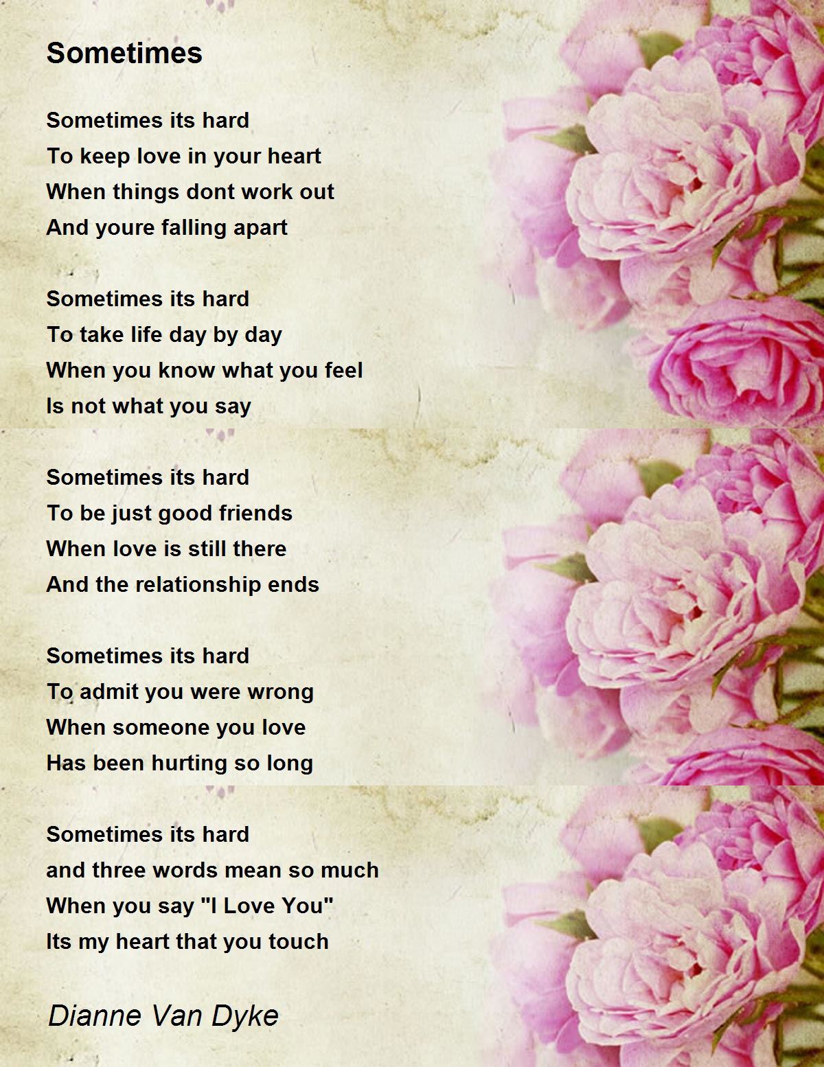 Sometimes its hard and three words mean so much When you say " I Love You" Its my heart that you touch...beautiful lines my dear poetess. thank u evermore for all these ideas that you spread. while reading i am influenced by your lines. thank u again. tony