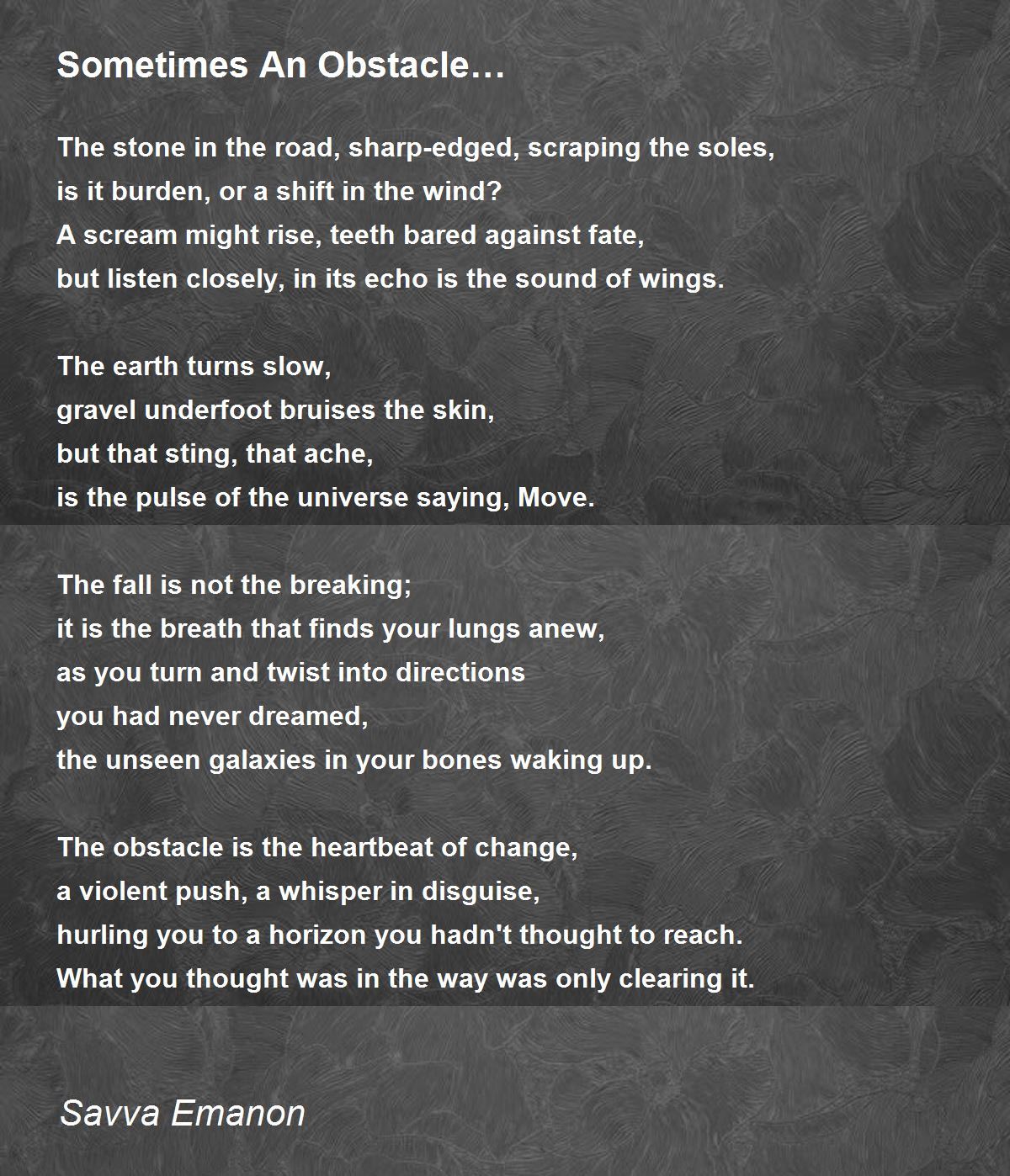 The obstacle is the heartbeat of change,