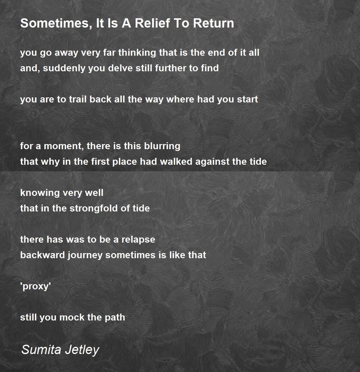 you go away very far thinking that is the end of it all