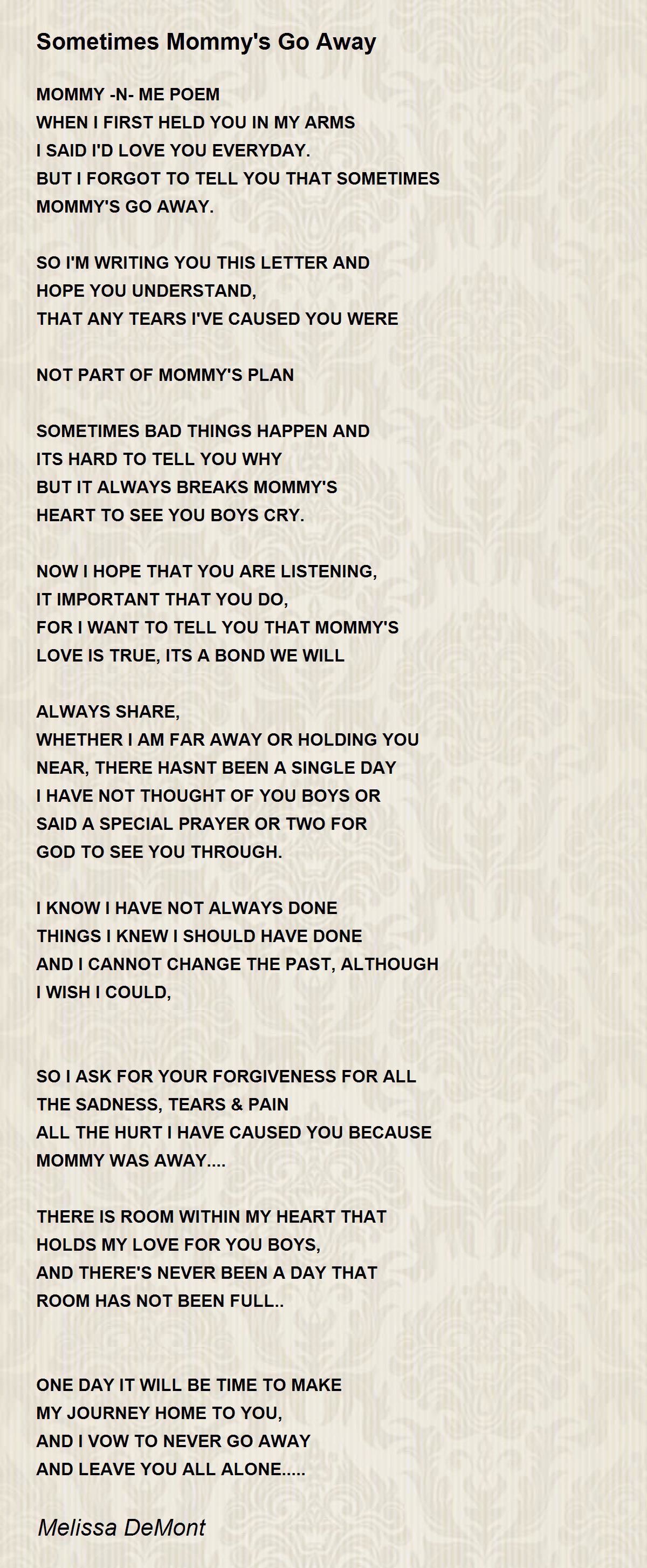 FOR I WANT TO TELL YOU THAT MOMMY'S