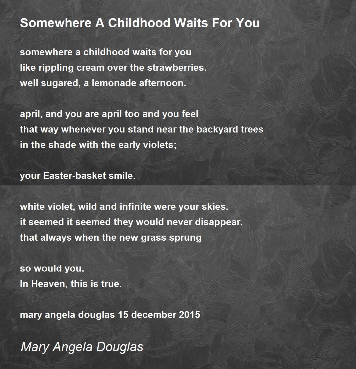somewhere a childhood waits for you