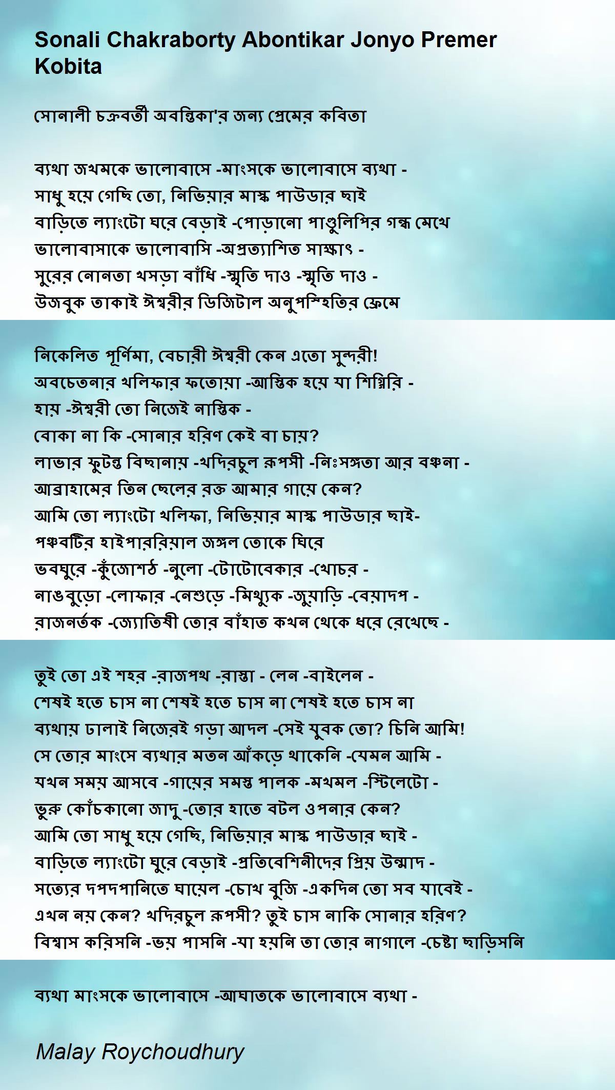সোনালী চক্রবর্তী অবন্তিকা'র জন্য প্রেমের কবিতা