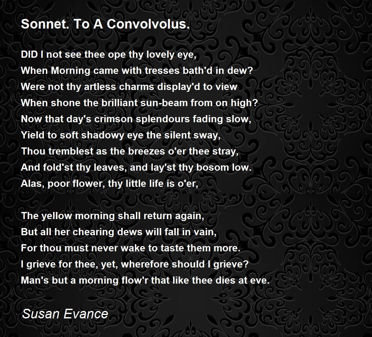 Man's but a morning flow'r that like thee dies at eve.
