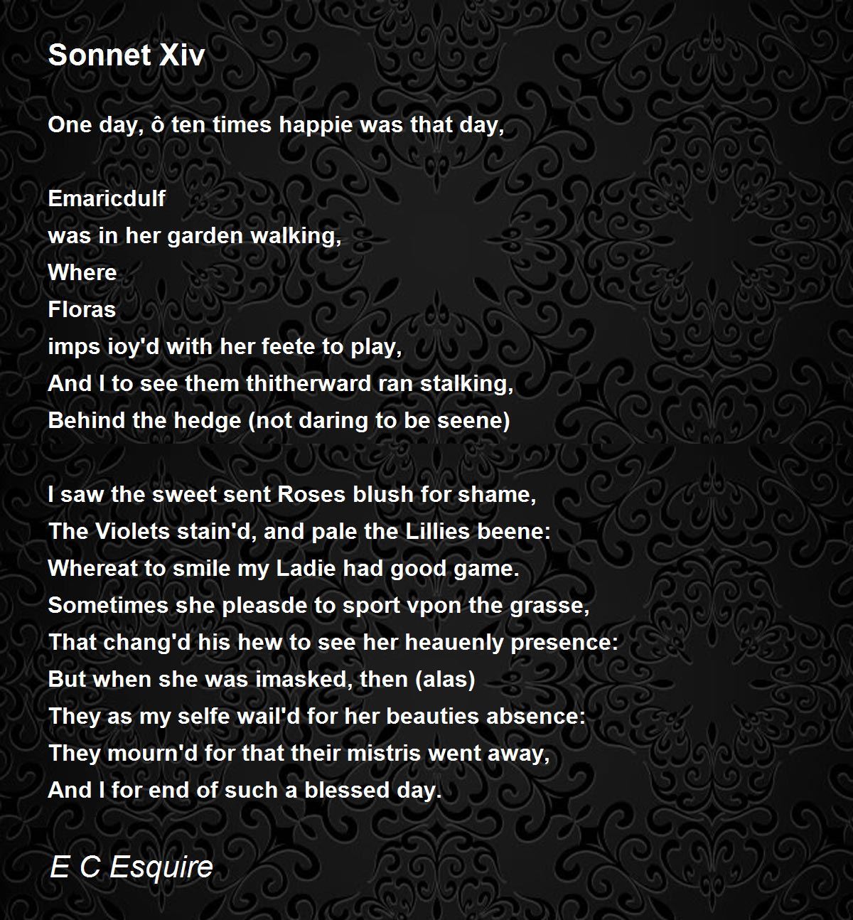 They as my selfe wail'd for her beauties absence: