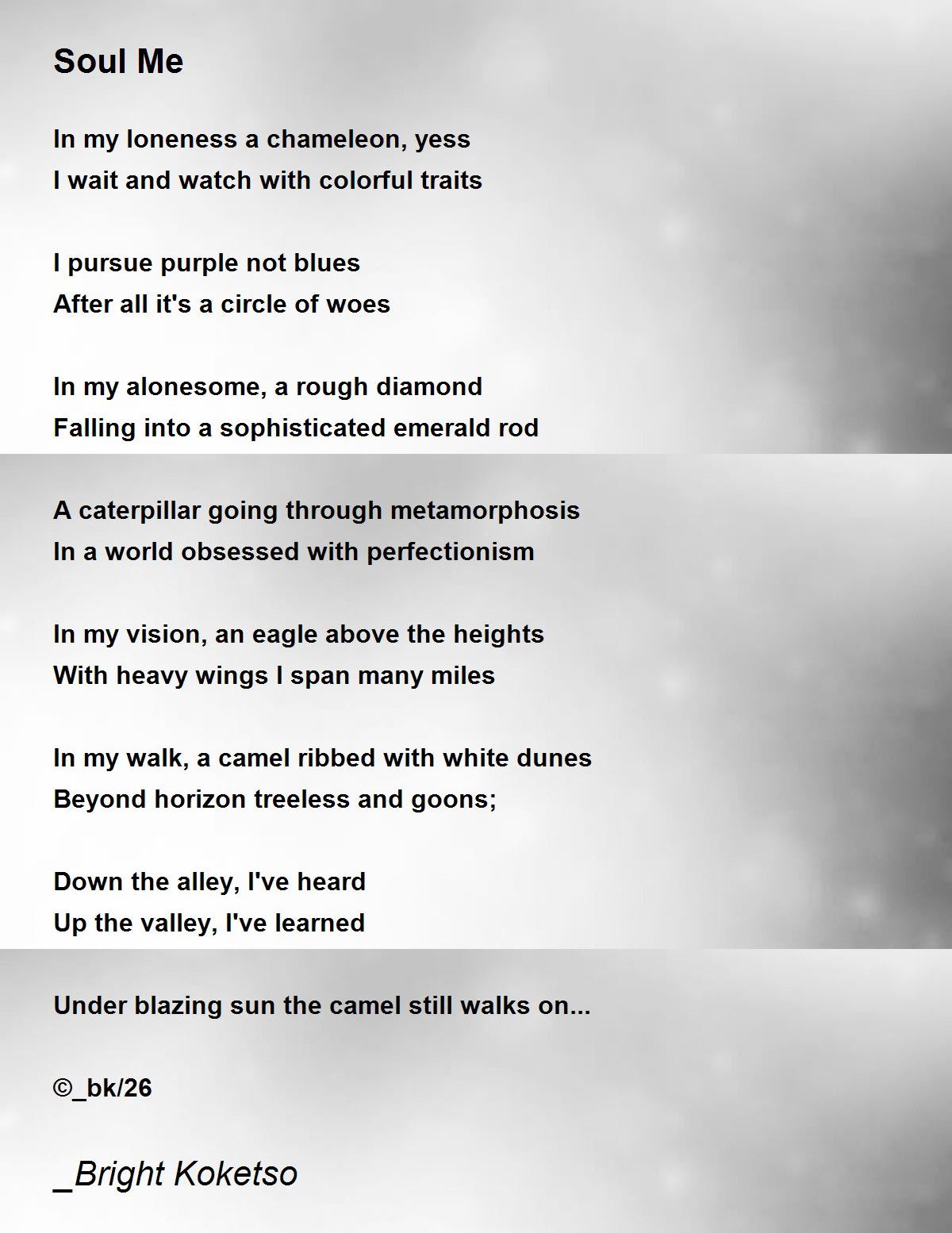 In my loneness a chameleon, yess