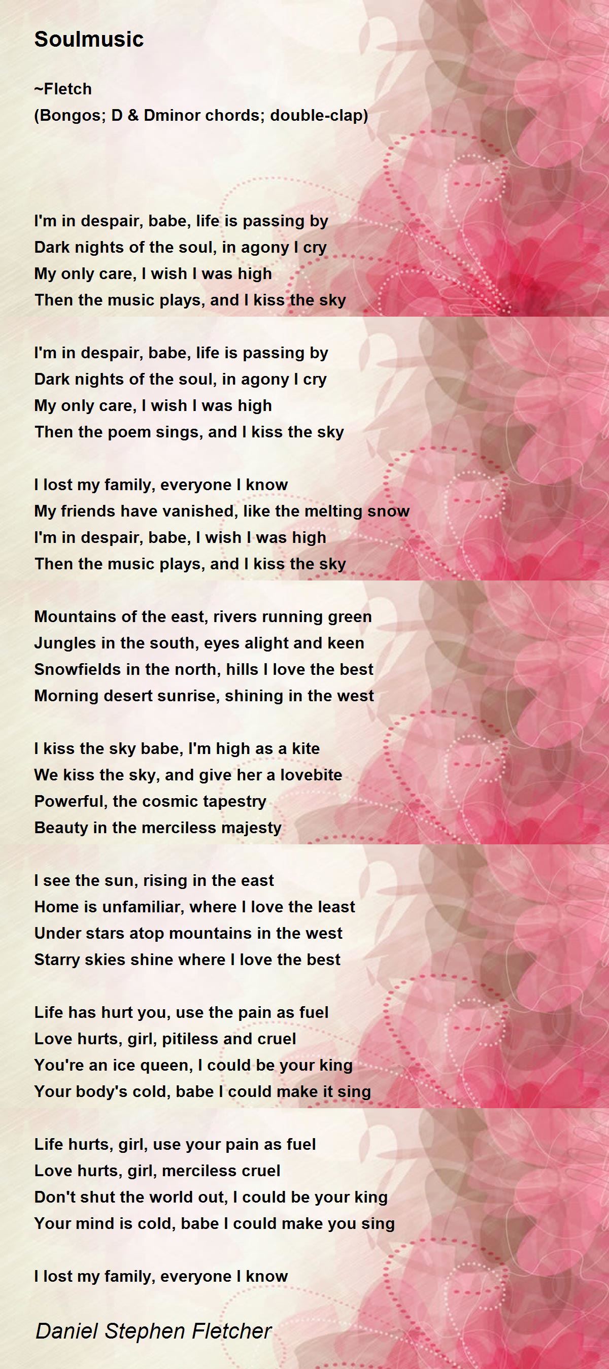 Then the poem sings, and I kiss the sky