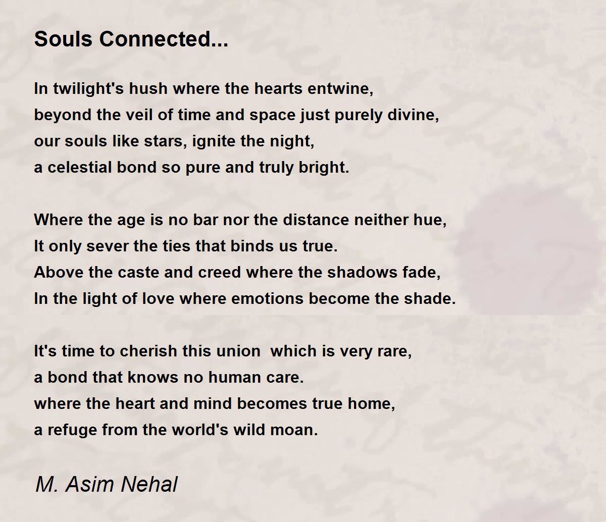 The poems speaks of the divine bond, " a bond that knows no human care"… nice. Top score