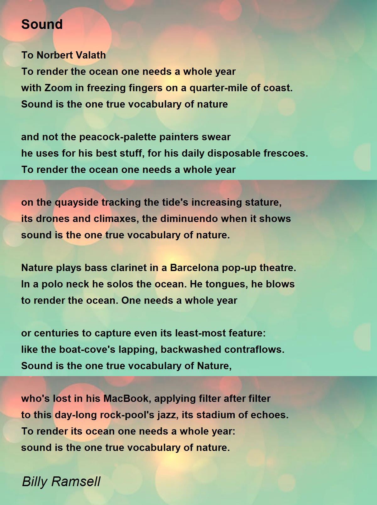 Sound is the one true vocabulary of Nature,