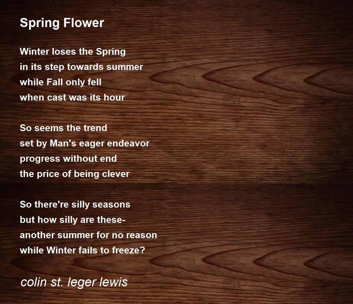 So seems the trend set by Man's eager endeavor progress without end the price of being clever... comparing human beings with the winter, spring and sommer........ very good imagination that forms into words to make a great poem. thank you dear poet. tony