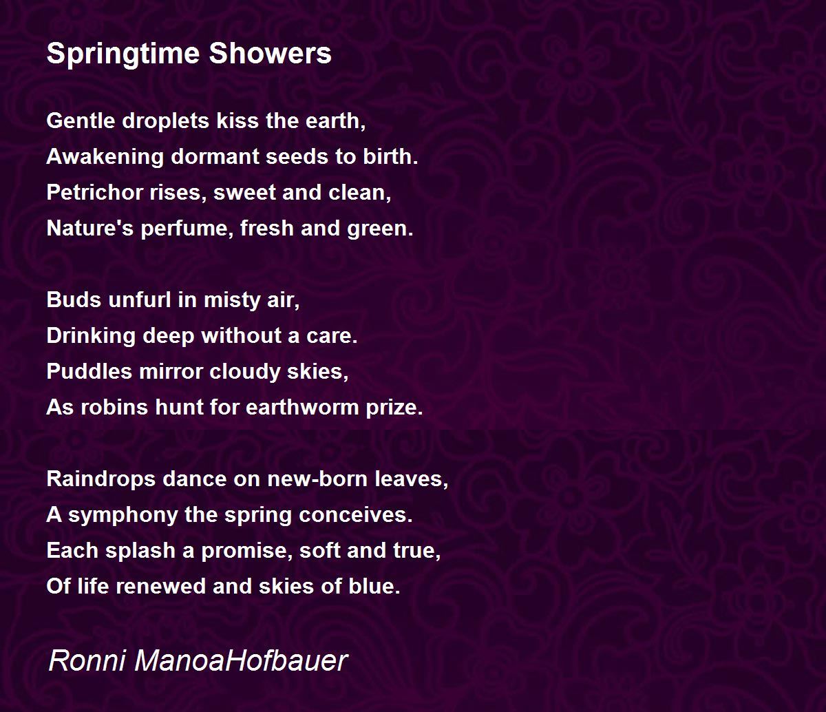 Gentle droplets kiss the earth,