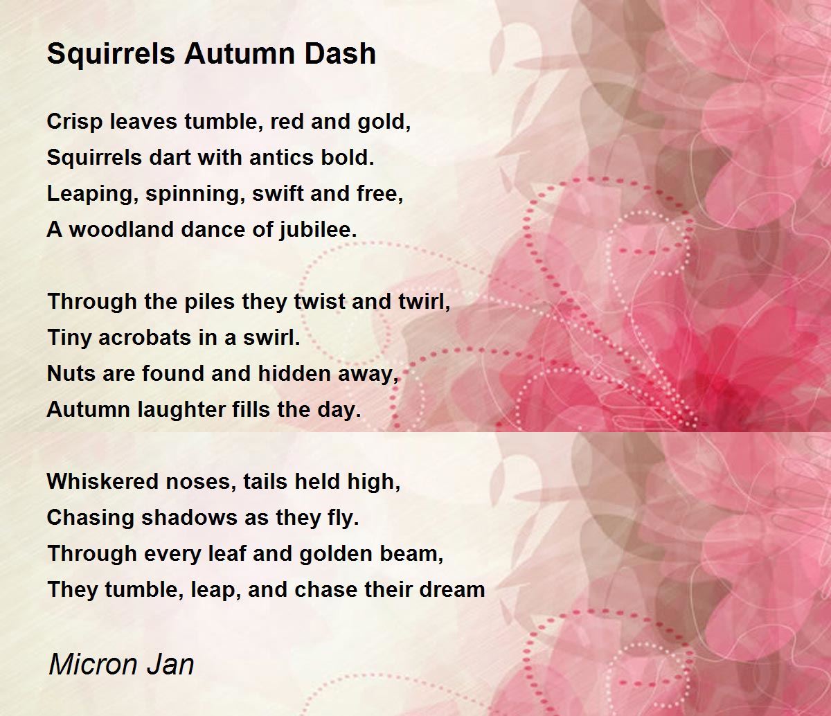 Squirrels dart with antics bold.