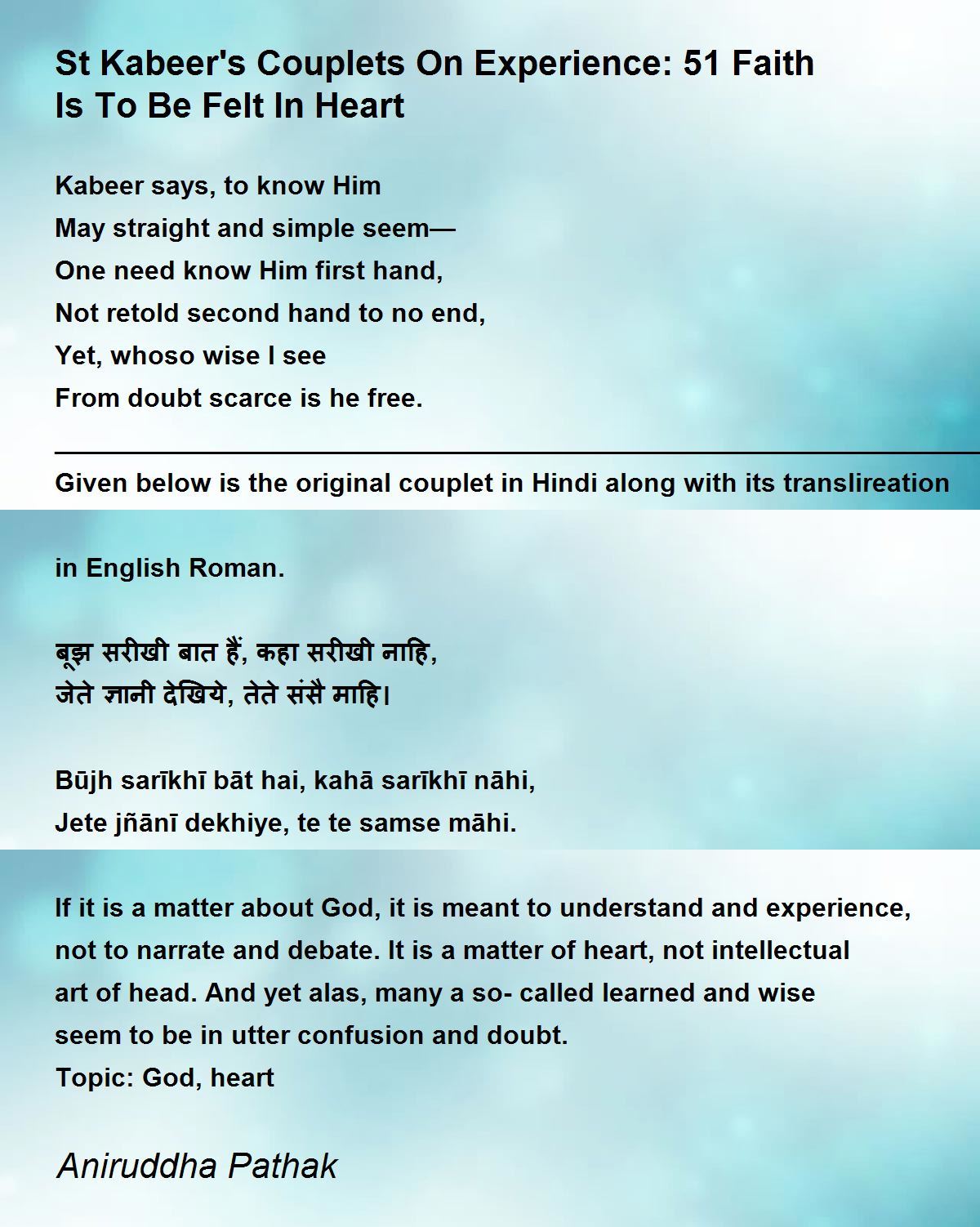 If it is a matter about God, it is meant to understand and experience, not to narrate and debate. It is a matter of heart, not intellectual art of head. And yet alas, many a so-called learned and wise seem to be in utter confusion and doubt.